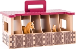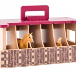 De stal is gemaakt van hoogwaardig hout en ontworpen om dagelijks spelen te weerstaan. Zes afzonderlijke boxen zorgen voor overzichtelijke opslag van paardenfiguren en accessoires. Ideaal als cadeau voor kleine dieren- en paardenliefhebbers.