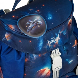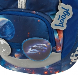 Ultralichte schoolrugzak BAAGL Airy Vesmír met een gewicht van slechts 750 g, ideaal voor eersteklassers en jongere schoolkinderen. Biedt ergonomisch gevormde rug met het AIRFLOW ERGO-systeem, volledig verstelbare banden en ondersteunende riemen voor een gelijkmatige verdeling van de belasting. Dankzij de Magnetic Click-sluiting, het waterdichte gerecyclede materiaal en reflecterende elementen garandeert hij comfort, veiligheid en stijl met verwisselbare patches.