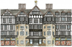 - LIBERTY LONDON-gebouw (Tudorstijl) / bloemenpatroon