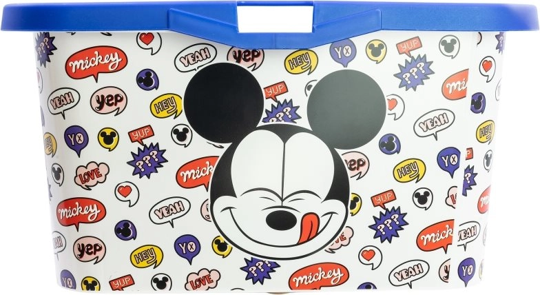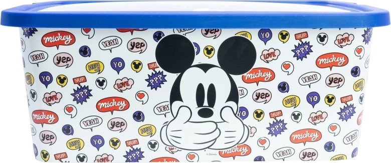 Praktische kunststof opbergbox met een inhoud van 13 l met het motief MICKEY, ideaal voor het organiseren van speelgoed, bouwsets en kleinigheden in de kinderkamer. Heeft een afneembaar deksel, is licht, duurzaam en past dankzij de compacte afmetingen in planken en rekken.