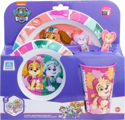 Een schattige en praktische 5-in-1 kinder eetset met PAW PATROL-motief maakt elke maaltijd leuker dankzij de kleurrijke print. Bevat een bordje, kommetje, lepeltje, vorkje en beker. De set is BPA-vrij en de beker is geschikt voor de magnetron (600 W / 2 min).