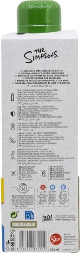Deze roestvrijstalen thermosfles van 515 ml in iconisch groen met THE SIMPSONS-motief combineert design en functionaliteit. Vacuümisolatie helpt dranken lang heet of ijzig verfrissend te houden, terwijl de stevige schroefdop het lekrisico in rugzak of handtas minimaliseert.