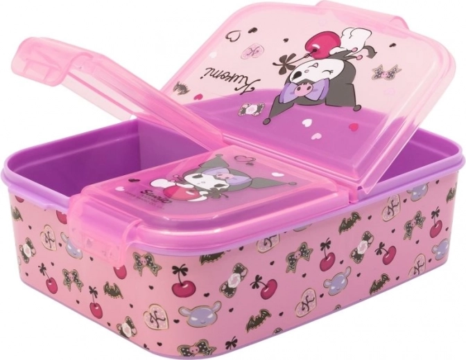Duurzame STOR multi-box voor tussendoortjes KUROMI met 3 vakken, BPA-vrij en met officiële licentie. Ideaal voor school, speeltuin en uitstapjes.