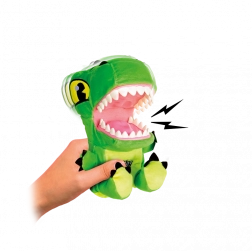 Ontdek het plezier met de op batterijen werkende pluchen dinosaurus Crunchazoos, die een realistische brul laat horen en spanning en actie in het spel brengt. De zachte en schattige metgezel prikkelt de verbeelding en bevordert de fijne motoriek van kinderen – perfect om thuis mee te spelen en als decoratie voor de kinderkamer.