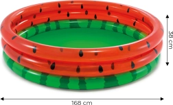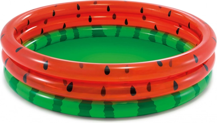 Het stijlvolle zwembad in de look van een sappige watermeloen brengt direct een zomerse sfeer in je tuin. Dankzij de drie opblaasbare ringen van hoogwaardig PVC (0,23/0,18 mm) is het stabiel, comfortabel en bestand tegen normaal gebruik. Waterhoogte 18 cm is vriendelijk voor kleinere kinderen en geeft ouders een veiliger gevoel.