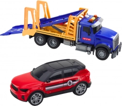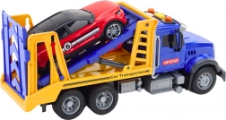 De set bevat twee sportieve personenauto’s die eenvoudig op en van de trailer geladen kunnen worden. De transporter heeft bewegende delen die de functies van een echt voertuig realistisch nabootsen.