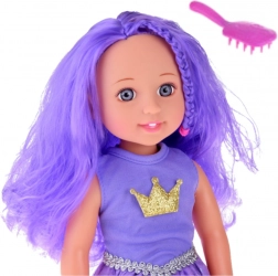 De pop is gekleed in een paarse jurk met een glinsterende kroon op de borst en een subtiele zilveren riem, wat haar een koninklijke look geeft. Haar roze ballerina’s maken de outfit perfect af. Dankzij de beweegbare armen en benen kan de pop in verschillende poses worden gezet, waardoor kinderen ruimte krijgen om hun eigen verhalen te creëren. Gemaakt van duurzaam plastic, klaar voor dagelijks, intensief spelen.
