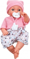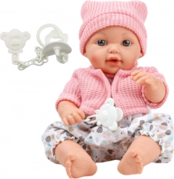 De set bevat een speen aan een ketting die aan de kleding kan worden bevestigd, wat authenticiteit toevoegt aan het spel. De pop is gemaakt van duurzaam plastic materiaal, is licht, praktisch en aangenaam om aan te aanraken – ideaal voor dagelijks spel, knuffelen en ook voor op reis.