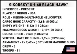 Bouw en bewonder het gedetailleerde model van de helikopter Sikorsky UH-60 Black Hawk van COBI, bestaande uit 928 bouwonderdelen. Dit realistische model zal elke liefhebber van geschiedenis en militaire techniek enthousiast maken.