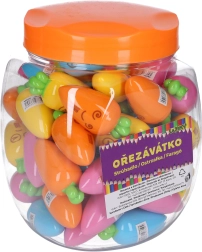 Praktische puntenslijper voor één potlood in de vorm van een wortel, leuk voor zowel kinderen als volwassenen. Biedt vier vrolijke kleuren en veilig, schoon slijpen voor school, kantoor en thuis.