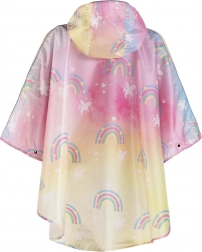 De doordachte snit maakt het mogelijk om de poncho over een rugzak of boekentas te trekken, zodat de spullen van het kind droog blijven. Reflecterende elementen verhogen de zichtbaarheid in schemer en regen, en het praktische trekkoordzakje is kleurmatig afgestemd op het poncho‑motief – ideaal voor op reis, naar school en naar clubs.