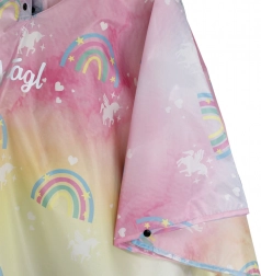 Geniet van droge en comfortabele avonturen in de regen. De BAAGL kinderregenponcho met eenhoornmotief valt op door speelse kleuren en functionele details. De capuchon met klep beschermt het gezicht tegen regendruppels, terwijl het waterdichte, lichte materiaal prettig draagt en makkelijk in te pakken is.