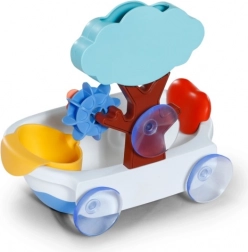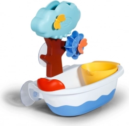 Deze speelse badset verandert elke wasbeurt in een leuk wateravontuur. Kinderen kunnen water in het bekertje scheppen, het in de boomdouche gieten en kijken hoe het waterrad gaat draaien. Dankzij de zuignappen blijft de basis stabiel op het gladde oppervlak van het bad of de tegelwand.