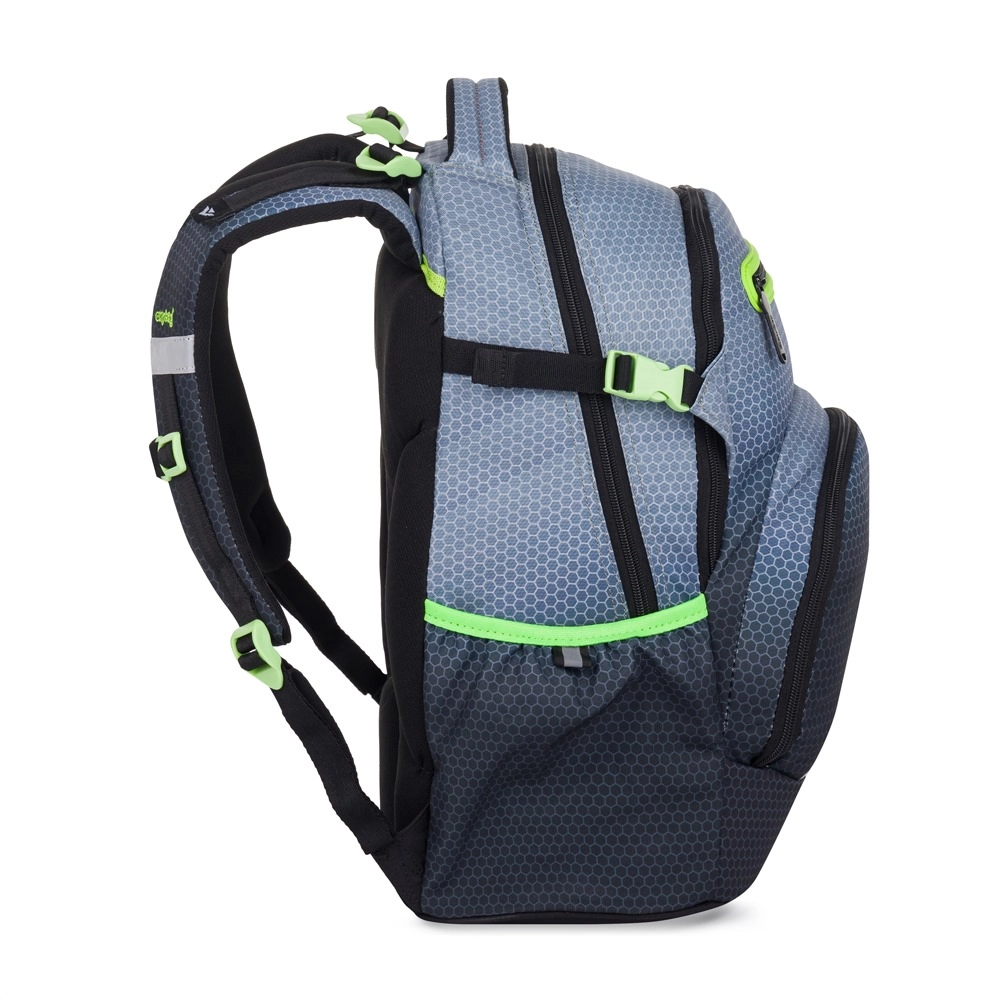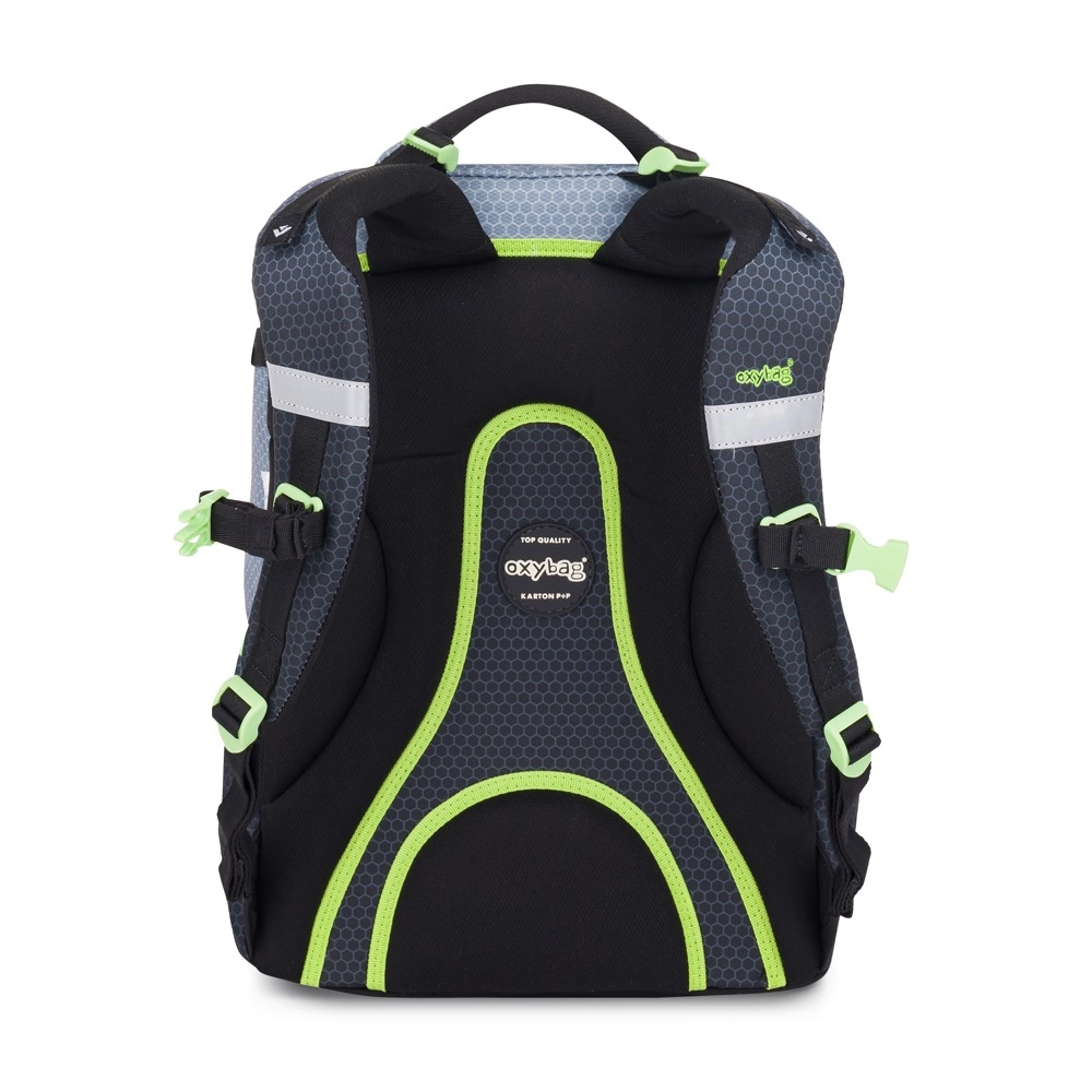 Moderne en praktische schoolrugzak OXY Ombre in grijze kleur is de ideale keuze voor leerlingen vanaf groep 6 (ongeveer 3e leerjaar). Met het moderne ombre-design valt hij meteen op. Hij biedt comfort en veiligheid dankzij het anatomisch gevormde rugpaneel, gewatteerde schouderbanden en de verstelbare borstriem.