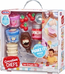 Ontdek de leuke ijssenset voor kinderen LITTLE TIKES Creative Chefs, die creativiteit, rollenspel en spelenderwijs leren stimuleert. Met 17 realistische accessoires, drie “smaken” (vanille, chocolade, aardbei) en herbruikbaar vormzand kunnen kinderen bolletjes “scheppen”, versieren en hun favoriete desserts serveren volgens de visuele receptkaart.