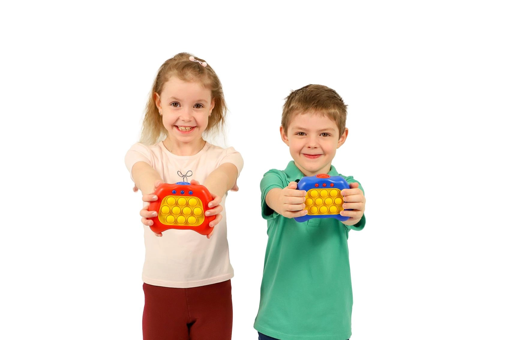 Bubble Pops is een slimme combinatie van de populaire pop-it fidget en een elektronisch spel met licht en geluid. Kinderen zijn meteen geboeid – de bubbels met prettige tactiele feedback en de lichtsignalen stimuleren fijne motoriek, concentratie en oog-handcoördinatie. Dankzij meerdere niveaus en modi genieten zowel beginners als kleine reactiespel-kampioenen van het spel.