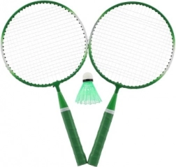 - 2 rackets, 1 plastic shuttle