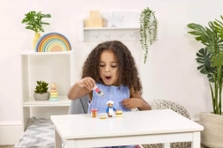 De figuren en keukenspullen stimuleren creativiteit, communicatie en de ontwikkeling van de fijne motoriek.