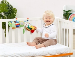 Dankzij de praktische textiele lusjes bevestig je het speeltje eenvoudig aan de kinderwagen, het ledikant of de verzorgingstas. Ideaal voor thuis en onderweg – vermaakt, stelt gerust en stimuleert de zintuigen. Een geweldig idee als cadeau voor een pasgeboren baby of bij het welkom heten van een nieuw kindje.