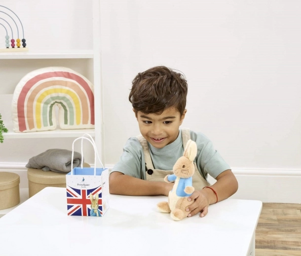 Schattige en superzachte Pieter Konijn in het iconische blauwe jasje zal elk baby’tje en kleine fans van de verhalen van Beatrix Potter blij maken. Geschikt vanaf de geboorte, ondersteunt de zintuiglijke ontwikkeling en is gemaakt van hoogwaardige, zachte en duurzame materialen. Geleverd in een stijlvolle Union Jack geschenkzak – een geweldig cadeau voor elke gelegenheid.