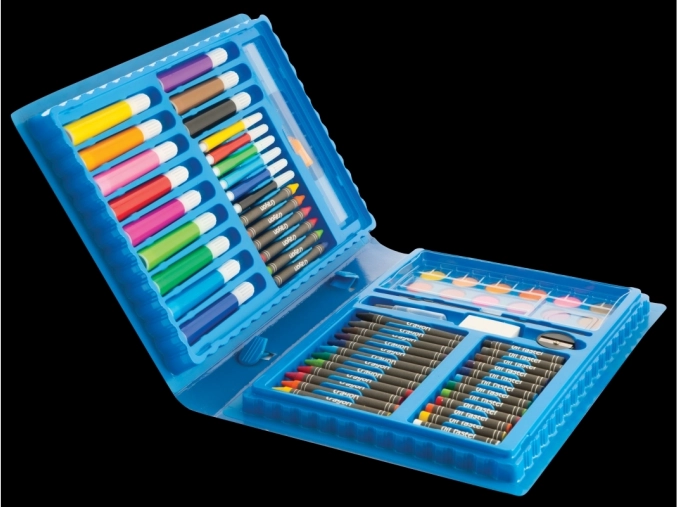 Deze universele set zal elke jonge creatieveling blij maken. In de stevige kunststof box vind je waterverf, stiften, waskrijtjes en kleurpotloden, aangevuld met een puntenslijper en gum. Dankzij de overzichtelijke indeling heeft elk onderdeel zijn eigen plek en is de set gemakkelijk mee te nemen.