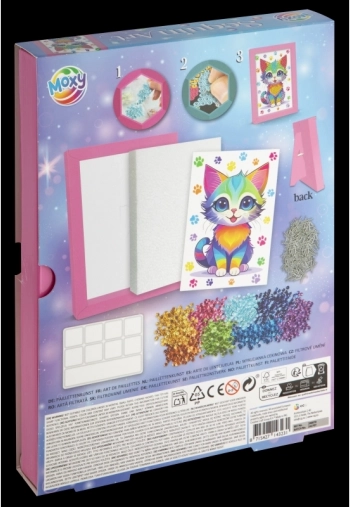 Ontdek een leuke creatieve activiteit voor kinderen: het maken van dierenafbeeldingen volgens nummers. De set is zo ontworpen dat het maken eenvoudig en overzichtelijk is – kinderen volgen simpelweg de nummers en plaatsen gekleurde rondjes met behulp van speldjes op de ondergrond. Het voltooide plaatje kan in het meegeleverde kartonnen lijstje worden geplaatst.