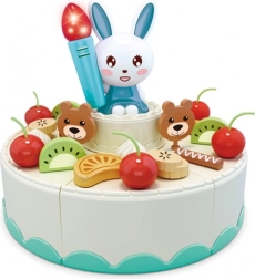 Bouw je eigen patisserie en organiseer een onvergetelijk feestje! De grote WOOPIE-set biedt alles wat kleine gastheren en gastvrouwen nodig hebben: een taart en taartpunt om te snijden, bordjes, bestek, drankjes en een doosje voor de resterende taart. Voor de sfeer zorgt de kaars met konijntje, die licht geeft, muziek speelt en na het uitblazen automatisch uitgaat.
