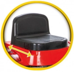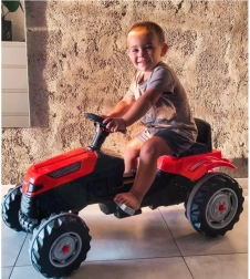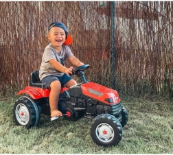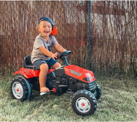 Voor maximaal comfort heeft de trekker een in 6 standen verstelbare zitting (voor–achter), een claxon op het stuur en kettingaandrijving op het achterwiel voor een soepele aandrijving. De draaiende vooras maakt manoeuvreren eenvoudig en de trekhaak laat je een aanhanger of andere accessoires koppelen voor nóg meer speelscenario’s.