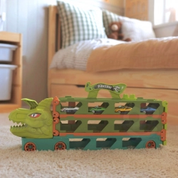 De lollige Dino-vrachtwagen is een geweldige keuze voor kinderen vanaf 3 jaar. De set bevat een vrachtwagen die kan worden omgetoverd tot een racebaan met dinosaurus-thema, wat eindeloos veel plezier brengt. Het launchersysteem katapulteert de autootjes naar voren door op de knop op de dinosauruskop te drukken.