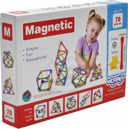 De magnetische bouwset Woopie biedt onbeperkte mogelijkheden om te creëren. Kinderen kunnen gemakkelijk onderdelen van de bouwset verbinden en verschillende geometrische vormen, letters, cijfers of zelfs eenvoudige wiskundige problemen creëren. Met dit speelgoed zijn de mogelijkheden voor fantasie eindeloos.