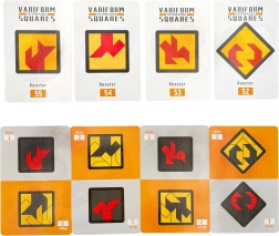 - - De set bevat: verpakking - bord, 12 gekleurde stukken, 55 kaarten met patronen.