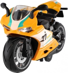 Deze kunststof wegracemotor combineert een dynamisch ontwerp met eenvoudig bedienen. Trek hem simpelweg naar achteren en laat los – de motor rijdt snel weg en biedt kinderen actierijk speelplezier. Geïntegreerd licht en geluid verhogen de realiteitsbeleving, waardoor elke rit als een echte race voelt.
