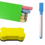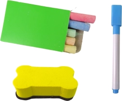 - Stift met magneet en gummetje, 5 kleuren krijt, spons