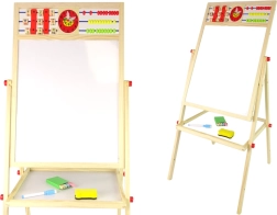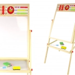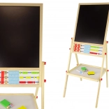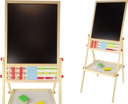 Het houten dubbelzijdige bord is een ideale educatieve speelgoedset voor kinderen vanaf 3 jaar. De stabiele constructie op poten zorgt voor veilig spelen. De combinatie van twee oppervlakken, één krijtbord en één magnetisch bord, biedt veel speelmogelijkheden:
