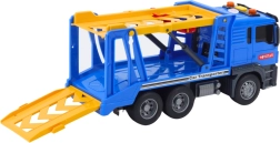 Een realistische takel-autotransporter met personenauto biedt kinderen uren creativiteit en plezier. Hij heeft een bewegend laadplatform, lichtbalken en geluideffecten (claxon, motor, achteruitrijden) en in de verpakking vind je ook een rode sportauto en batterijen, zodat er direct na het uitpakken mee gespeeld kan worden.