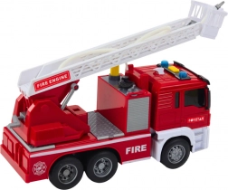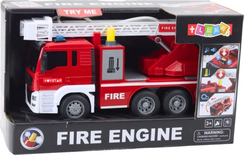 - brandweerauto met waterspuitfunctie, uitschuifbare en draaibare ladder, reservoir en slang, 3 AG13-batterijen