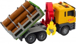 Realistische vrachtwagen met kraan voor houttransport op schaal 1:14 die kleine fans van bouwmachines zal verrassen. Biedt een functionele kraan voor het laden en lossen van boomstammen, licht- en geluidseffecten (claxon, achteruitrijden, alarm) en een duurzame uitvoering van hoogwaardig plastic. Kinderen oefenen hun fijne motoriek, begrijpen de werking van machines en beleven uren speelplezier.