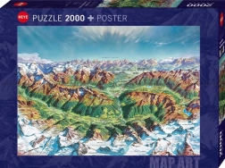 Duik in de Bergwereld in de Alpen en geniet van urenlang plezier met deze grote puzzel van 2000 stukjes van het merk HEYE. De kaartillustratie vangt de schoonheid van het alpine landschap en is ideaal voor liefhebbers van bergen, reizen en uitdagendere legpuzzels.