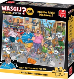 Puzzle JUMBO WASGIJ 46: Gekte in de Middenstraat zet traditioneel puzzelen op z’n kop. In plaats van het voorbeeld op de doos leg je de scène vanuit het perspectief van een gekozen personage, die je ontdekt met behulp van aanwijzingen en tips op de verpakking. Zo is elke legervaring anders, spannend en buitengewoon leuk.