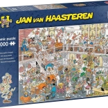 Puzzle JUMBO Renovatie met motieven van Jan van Haasteren is een uitdaging, zelfs voor ervaren puzzelaars. Het draagt zijn kenmerkende elementen, zoals de haaienvin of de nietsvermoedende handen, die elke liefhebber zullen verrassen.
