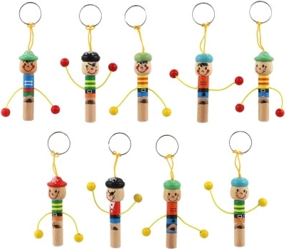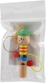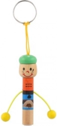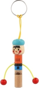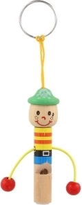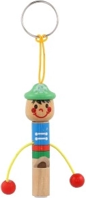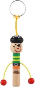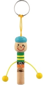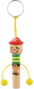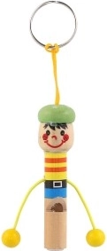 Schattige houten sleutelhanger in de vorm van een mannetje met geïntegreerd fluitje van 8 cm: zowel stijlvol als praktisch. Dankzij het lusje bevestig je hem eenvoudig aan sleutels, rugzak of etui. Vrolijke kleuren en een speels design maken hem leuk voor zowel kinderen als volwassenen. Kies uit een mix van varianten en geniet van de lichte en duurzame houten constructie en het praktische fluitje altijd binnen handbereik.