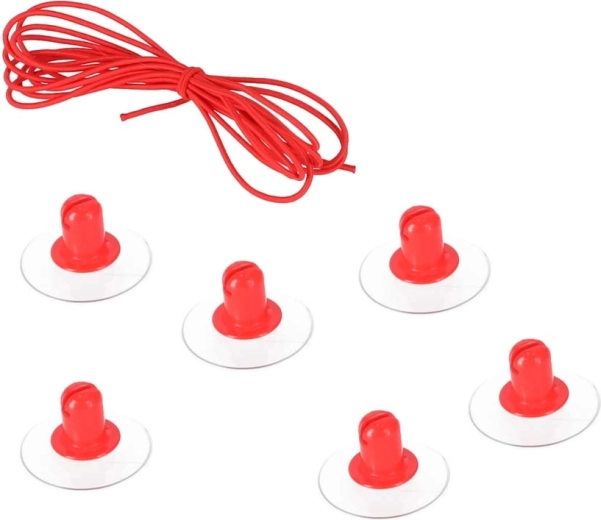 Zuignappen en een rood koord markeren in een oogwenk het speelvlak. Twee lichte doelen met netten staan klaar voor actie – spelen kan overal in huis.