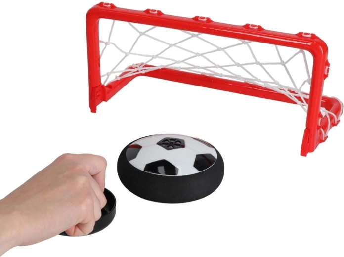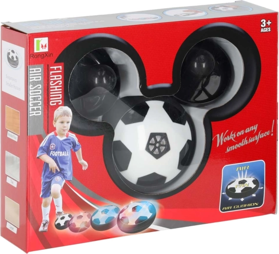 Bal in voetbalstijl die oplicht en dankzij het luchtkussen soepel beweegt over tafel en vloer. De zachte foamrand beschermt de omgeving.