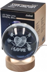 Elegante kristallen lamp in de vorm van een bol met het motief Love brengt een romantische sfeer en zacht ambient licht in het interieur. Dankzij het lage verbruik van 1,5 W is hij zuinig en ideaal als nacht- of decoratieve verlichting. Kwalitatieve afwerking en CE-declaratie zorgen voor een betrouwbare werking.