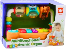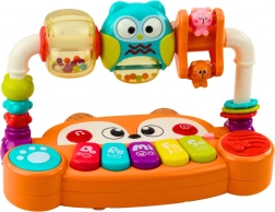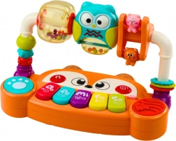 De piano bevat een draaibare uil met balletjes binnenin, evenals hangers om te schuiven en te draaien, die de ontwikkeling van de fijne motoriek, hand-oogcoördinatie en praktische vaardigheden ondersteunen. Verschillende texturen en kleuren stimuleren de nieuwsgierigheid en moedigen zelfstandig ontdekken aan.