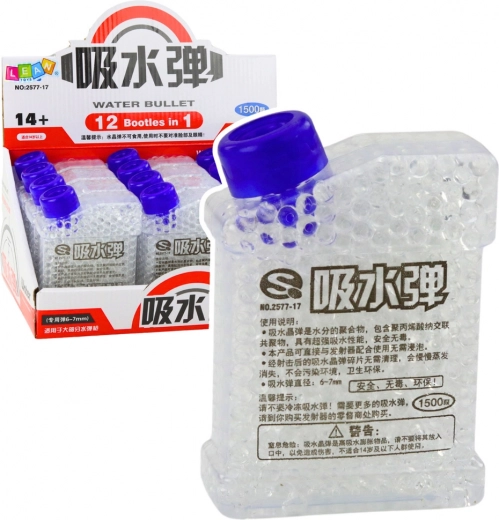 De doorzichtige houder bevat 1500 kant-en-klare hydrogelballetjes met een diameter van 6–7 mm, die direct te gebruiken zijn zonder weken. De balletjes zijn veilig, niet-toxisch en biologisch afbreekbaar; bij inslag vallen ze uiteen en laten ze geen rommel achter. Geschikt voor de meeste gelpistolen, ideaal voor speelplezier binnen en buiten.