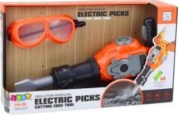 Interactief speelgoed voor kleine bouwers: kinderbreekhamer in oranje‑zwarte uitvoering met geluids- en trileffecten, ergonomische greep en veiligheidsbril. Gemaakt van duurzaam plastic, werkt op AA-batterijen, ideaal voor creatief en veilig spel voor kinderen vanaf 3 jaar.