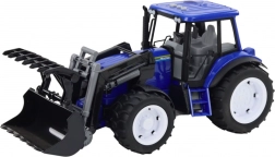 Deze blauwe trekker op schaal 1:10 valt op door de gedetailleerde cabine en de grote wielen voor stabiel rijden. De functionele voorste laadschop is eenvoudig op en neer te bewegen, ideaal voor realistische scènes van de boerderij of bouwplaats.