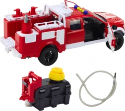 Een realistische brandweerauto voor kinderen vol actie en plezier. Dankzij de functie water spuiten, lichteffecten en geluidseffecten kruipen kleine helden moeiteloos in de rol van brandweerman. Het afneembare reservoir met pompje en slang maakt het mogelijk om “branden te blussen” thuis en in de tuin. De hoogwaardige kunststof uitvoering en het aantrekkelijke uiterlijk maken het een ideaal cadeau voor elke liefhebber van hulpdiensten.