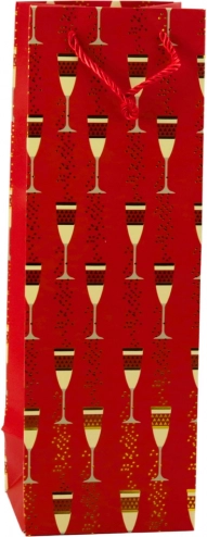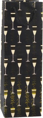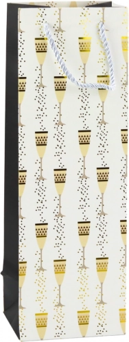 Deze cadeautas voor een fles combineert een representatieve look met functionaliteit. De opvallende print van glazen en bubbels met gouden accenten geeft elk cadeau een feestelijke toon – geschikt voor bruiloften, verjaardagen, jubilea, oud en nieuw en zakelijke events. Het universele formaat biedt veilig plaats aan de meeste standaardflessen.